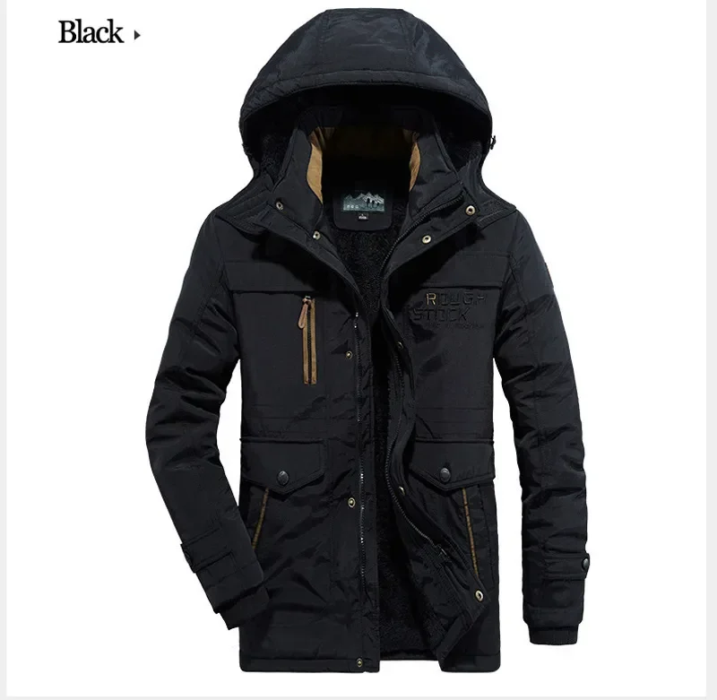 Winter Fleece Long Jacket Men Casual Thicken Warm Cotton Padded Jackets Man Fashion Hooded Outdoor Windproof Parkas Snow Coat